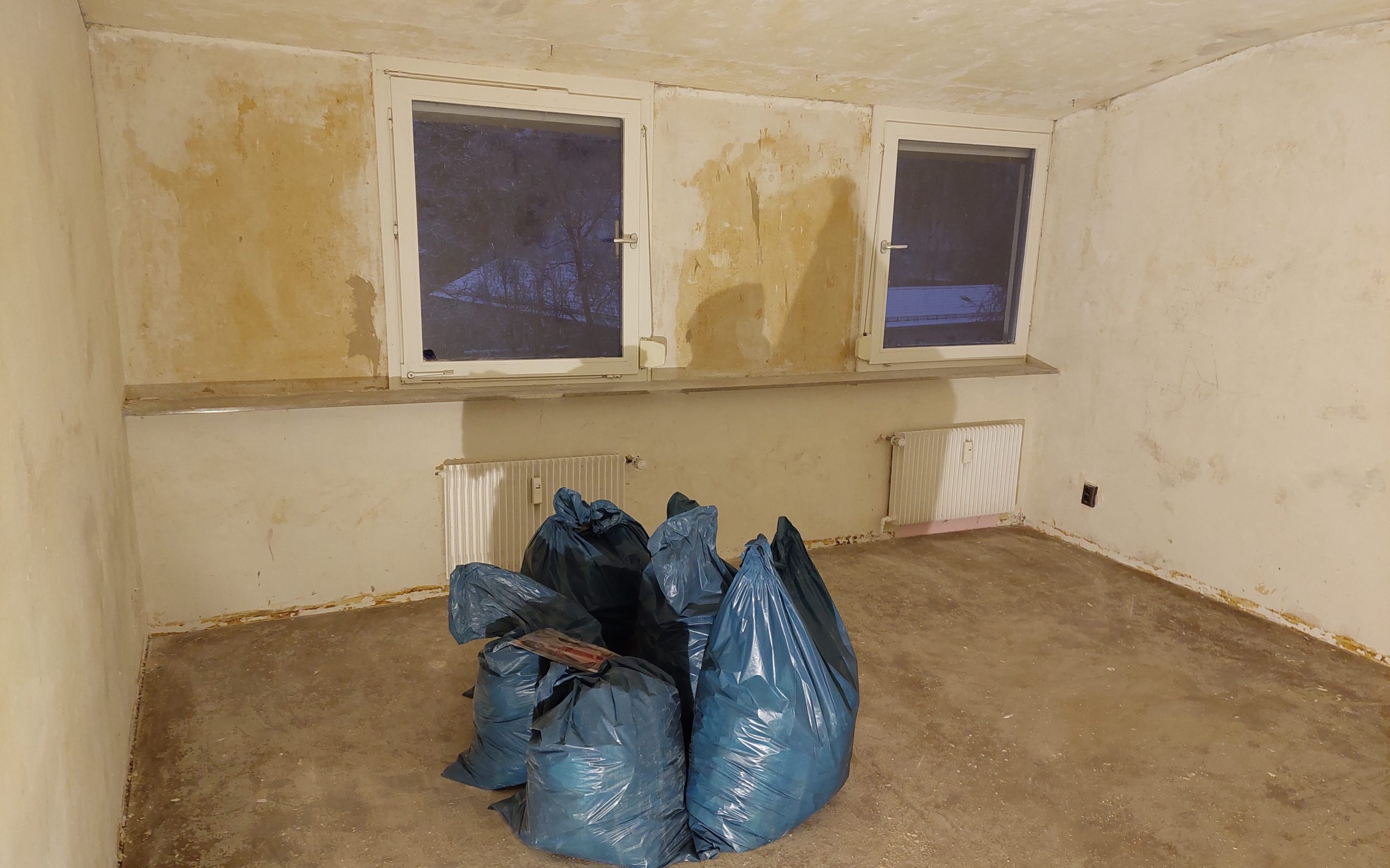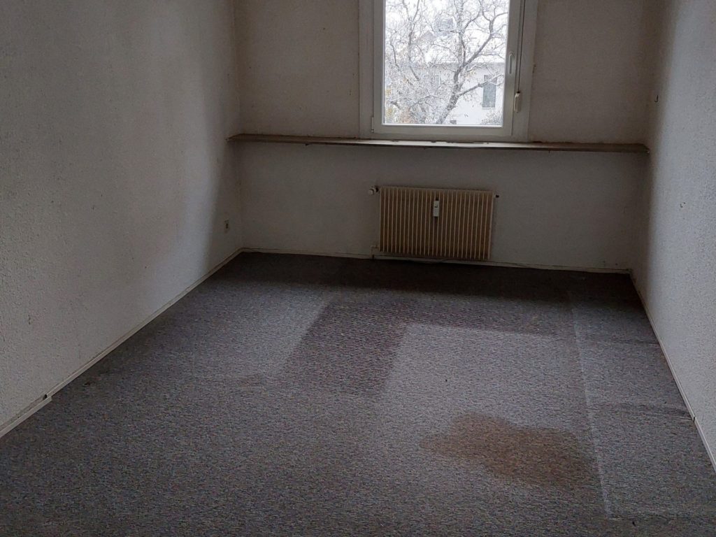 Über dem Kindergarten befanden sich zwei Mietwohnungen, die im Rahmen der Planung des Neubaus nicht mehr weiter belegt wurden. Diese sind stark renovierungsbedürftig, wie die folgenden Bilder zeigen.