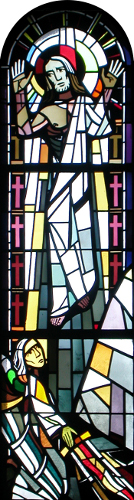Die Begegnung des Thomas mit dem Auferstandenen Jesus. Dies ist übrigens das gleiche Motiv, wie es das Wandfresko im Kirchenschiff vorne rechts darstellt.